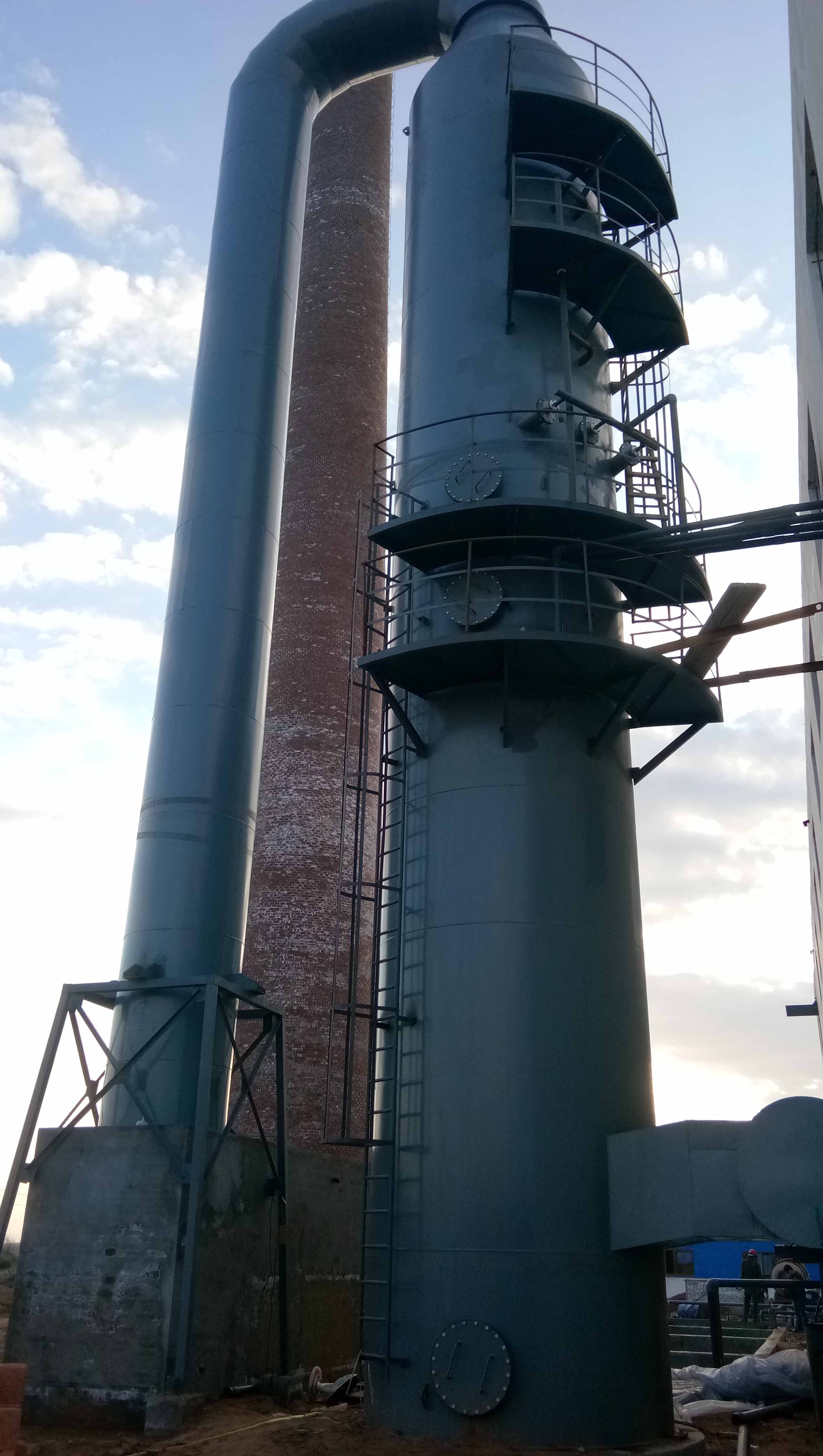 酸性廢氣的凈化,主要是將酸性廢氣用三級堿液噴淋,再由煙囪排放。用該方法吸收酸性廢氣時(shí),在真空抽氣栗上安裝密閉罩,將車間內(nèi)氣體排放,進(jìn)入裝有填料的噴淋塔。該工藝去除酸性廢氣的效率可達(dá)90%以上。